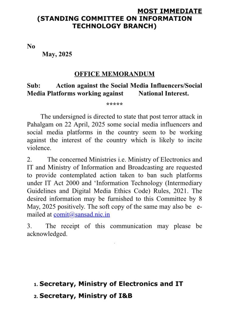 - भारत सरकार ने उन सोशल मीडिया अकाउंट्स और इन्फ्लुएंसर्स के खिलाफ सख्त कार्रवाई शुरू की है जो देशविरोधी बातों को बढ़ावा दे रहे हैं।